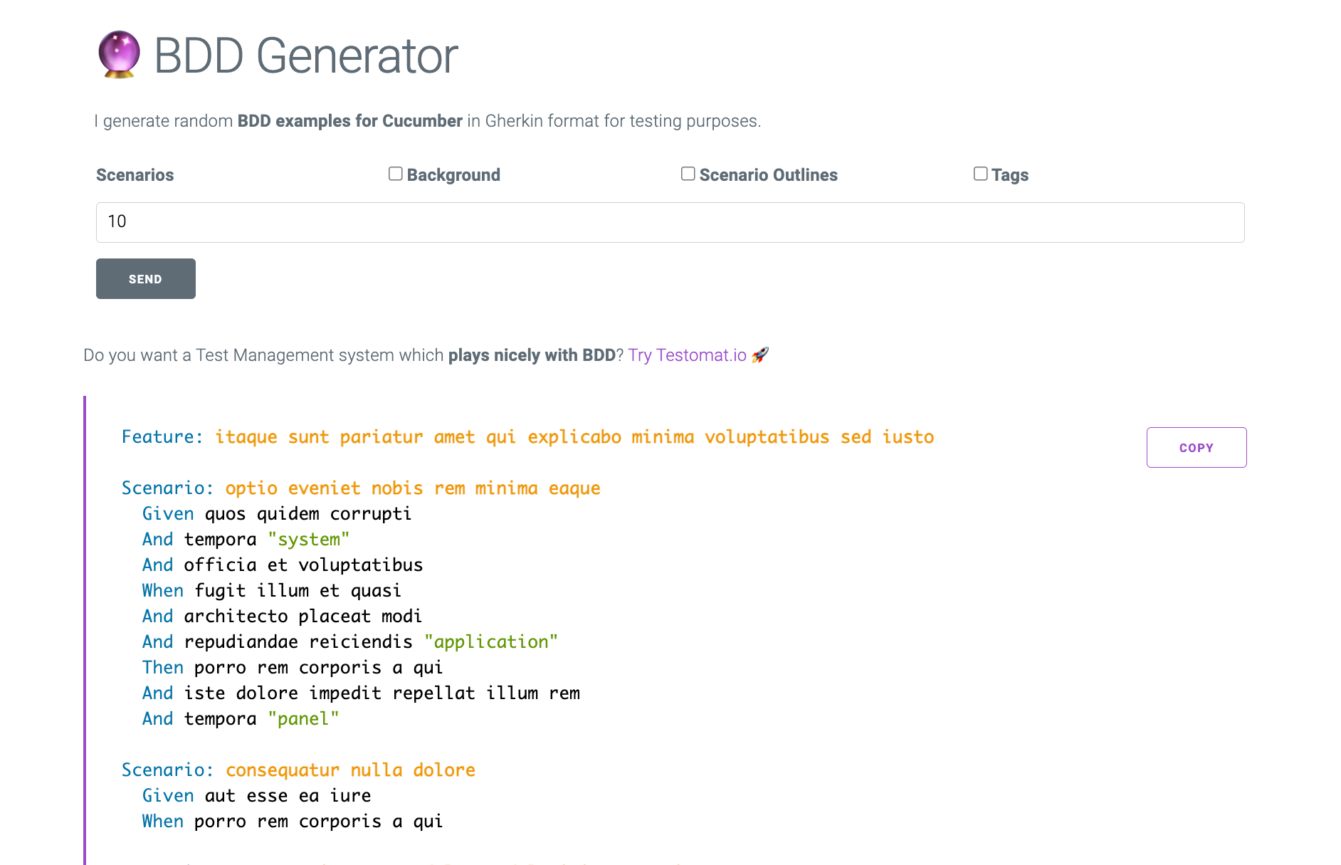 - Convenient organization of user stories. The tool includes meta-tags, enabling users to filter and categorize user stories for selective execution of BDD tests.