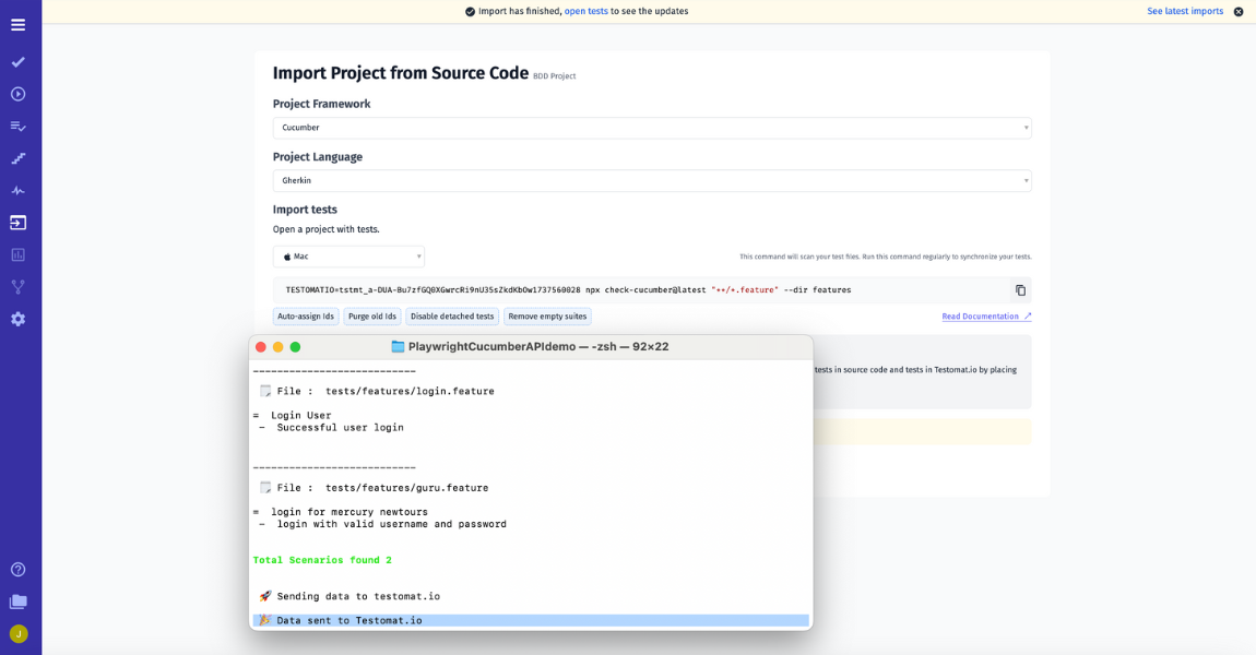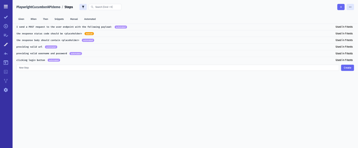 Similarly, with UI tips our test management suggests – launch a test execution of your Cucumber API Playwright framework.