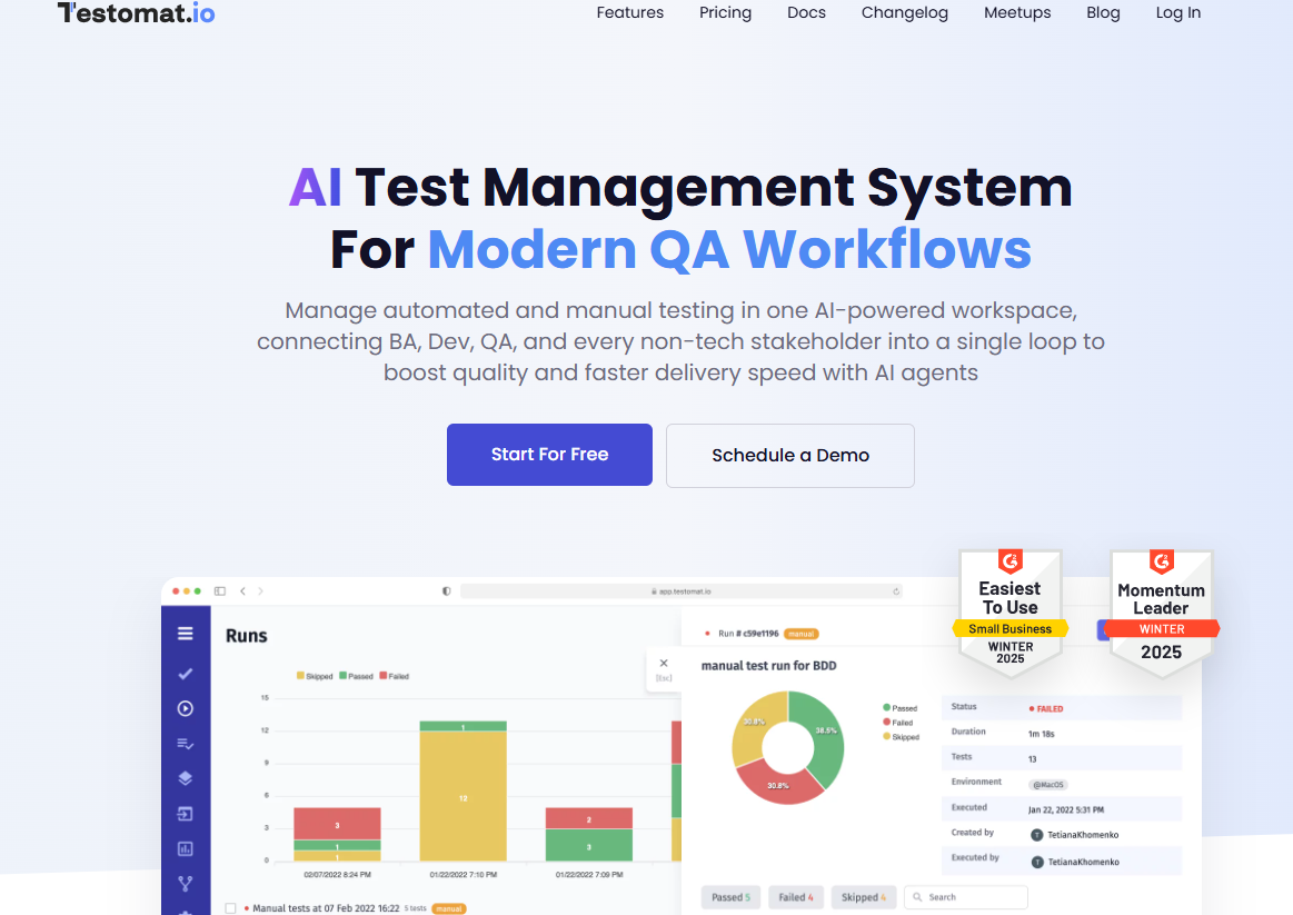 Testomat.io leads the way with its AI-powered features, intuitive interface, and strong integration with test automation and CI/CD workflows. Built for modern development teams, it helps automate test case creation, self-heal tests when UI changes occur, and provides actionable reporting for decision-making.
