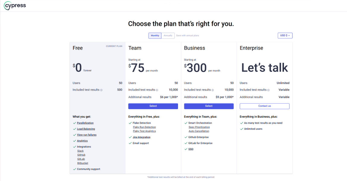 Fortunately for Cypress users, Cypress Cloud has a free alternative – Sorry Cypress and its enhanced version Current. They are used for parallelizing, recording, and debugging Cypress tests. They are open-source and has an MIT license.