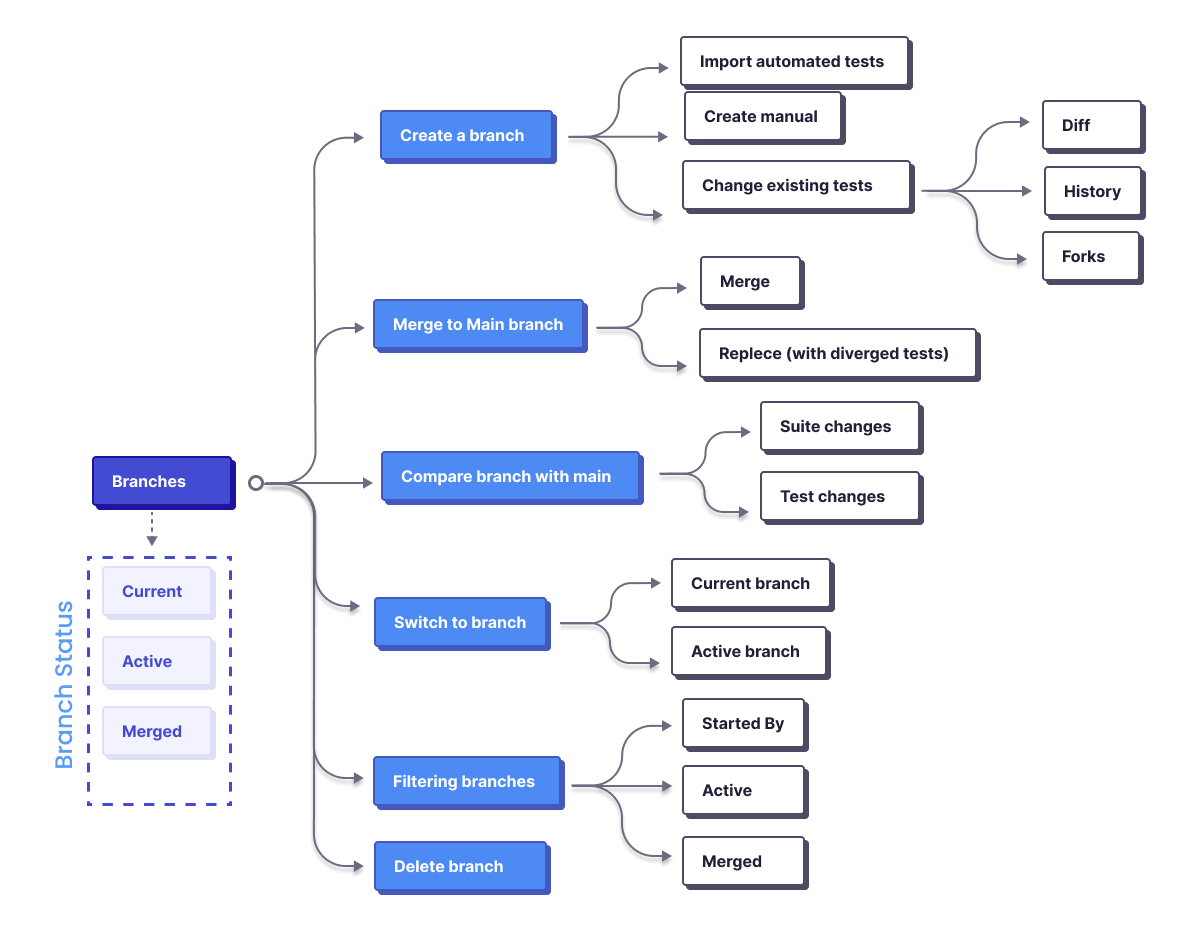 - Branches – open up the possibilities for effective teamwork. Like Devs, our test management system allows QA engineers to work independently in different branches on their specific tasks distributed among the QA team. It is Collaborative Testing when multiple team members work on the same project simultaneously. The culmination is the merging of these branches at the end as effective completion of the project.