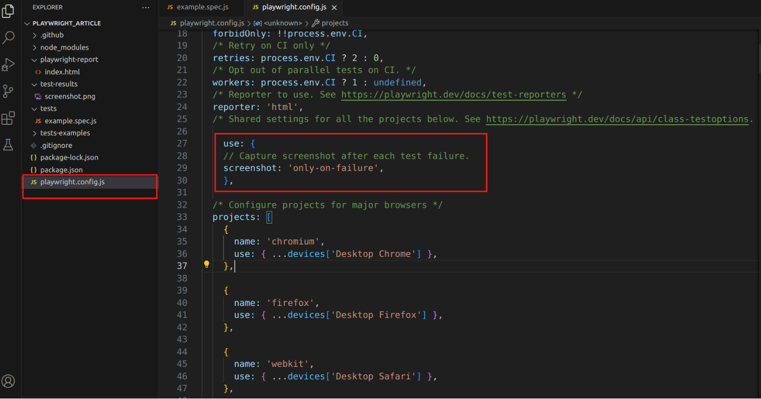 - Capture Screenshot on Failure. This type allows you to capture a screenshot only when a test case does not pass as expected. Playwright offers such a screenshot option that can be set under the