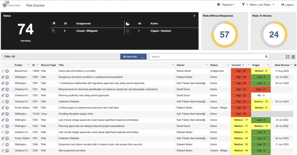 Also, for this purpose, teams often turn to specialized paid tools, such as Riskonnect. It allows the creation of a detailed table with information about all the risks in the project with a notification option: