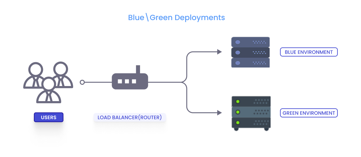 - Once the new version’s stability is confirmed, traffic is switched between environments — from blue to green. This can be done at the DNS server level or through a load balancer.