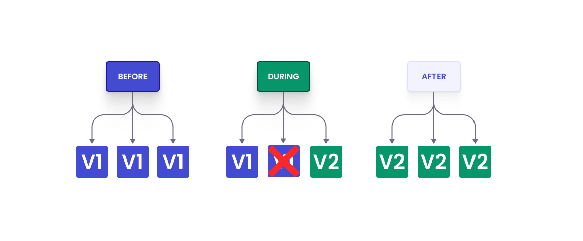 - If errors occur at any point, a rollback to the previous version can be performed to fix the defect. After that, deployment can resume.