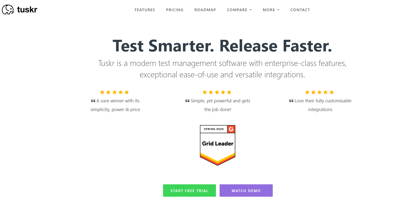 Tuskr uses smart systems to make the defect resolution process faster and easier. It finds issues in the code quickly, so you do not have to spend much time looking for problems. This test management tool uses AI and makes it simple for QA teams to find defects with little effort. With Tuskr, your team can use more time to make the testing process better, instead of going through a lot of manual reports.